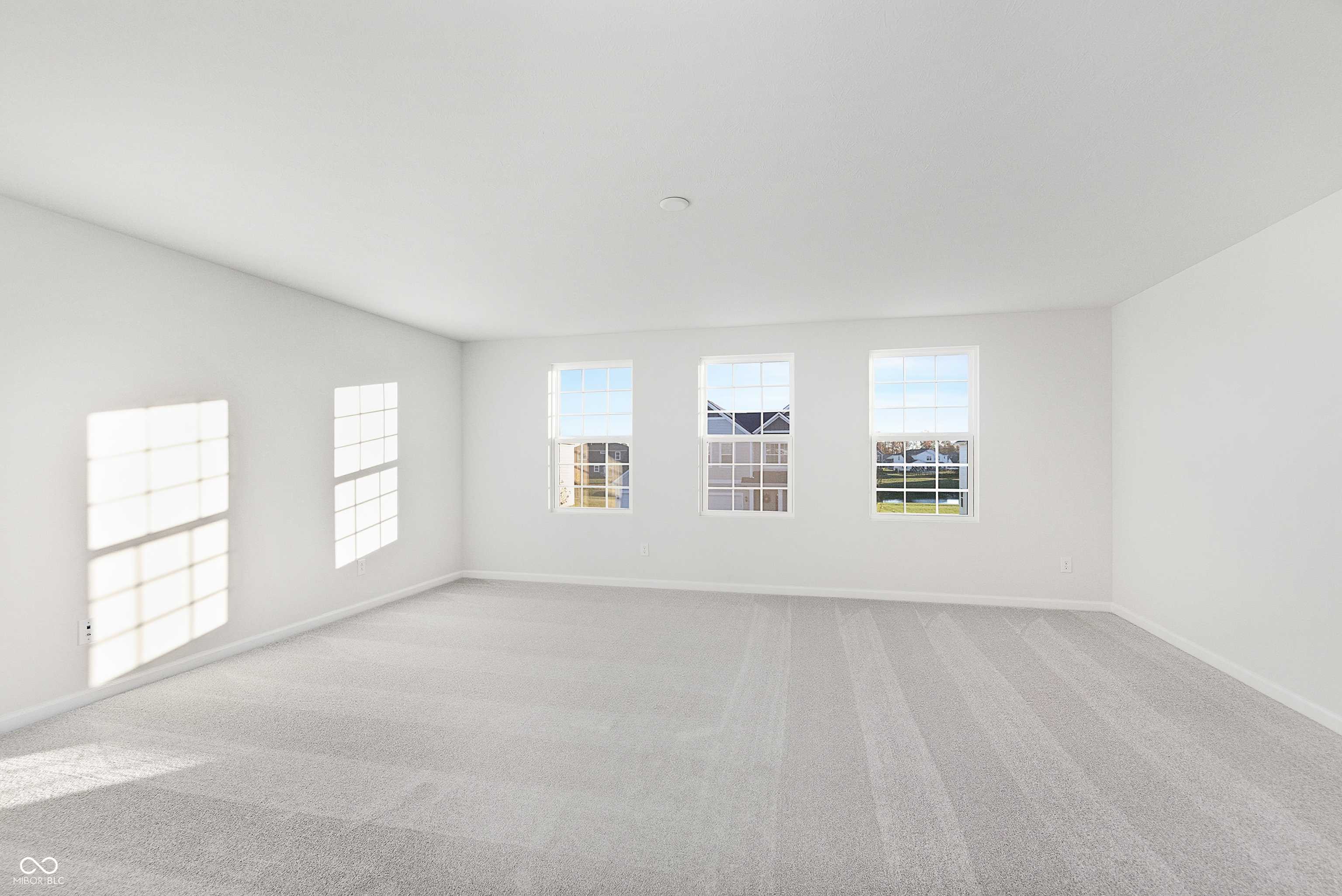Welcome to the Greenfield model, a thoughtfully designed home in the highly sought-after Lancaster neighborhood. Step inside to discover a bright and airy open-concept layout, perfect for entertaining and everyday living. The chef's kitchen is a true showpiece, featuring 42" creamy white cabinetry, Frost White Quartz countertops, gas appliances, an oversized island, and a spacious pantry. Overlooking the cozy cafe area and expansive gathering room, complete with a fireplace and elegant black granite surround, this space is designed for effortless hosting and relaxation. The main level also offers a versatile flex room, ideal for a home office, study, or playroom, along with the Pulte Planning Center, a dedicated workspace perfect for managing daily tasks, homework, or household organization. The Everyday Entry provides a convenient drop zone with built-in storage, keeping clutter at bay as you transition from the three-car garage into the home. Upstairs, retreat to the luxurious owner's suite, boasting a spa-inspired oversized shower and a generous walk-in closet. Three additional bedrooms all with walk in closets provide ample space, while the enormous second-floor game room offers endless possibilities for recreation and entertainment. A super-laundry room on the second floor adds convenience, making household tasks a breeze. An irrigation system ensures a lush, well-maintained lawn. The location offers close proximity to the Monon Trail, top-rated Westfield-Washington School District, and a host of community amenities such as a bath house, pool, shade pavilion, wading pool, playground, athletic courts, and Trailhead Park. This impressive two-story home design is conveniently located near the Grand Park Sports Complex, upscale shopping, and dining at Clay Terrace, as well as being just minutes from US-31 and Downtown Westfield.