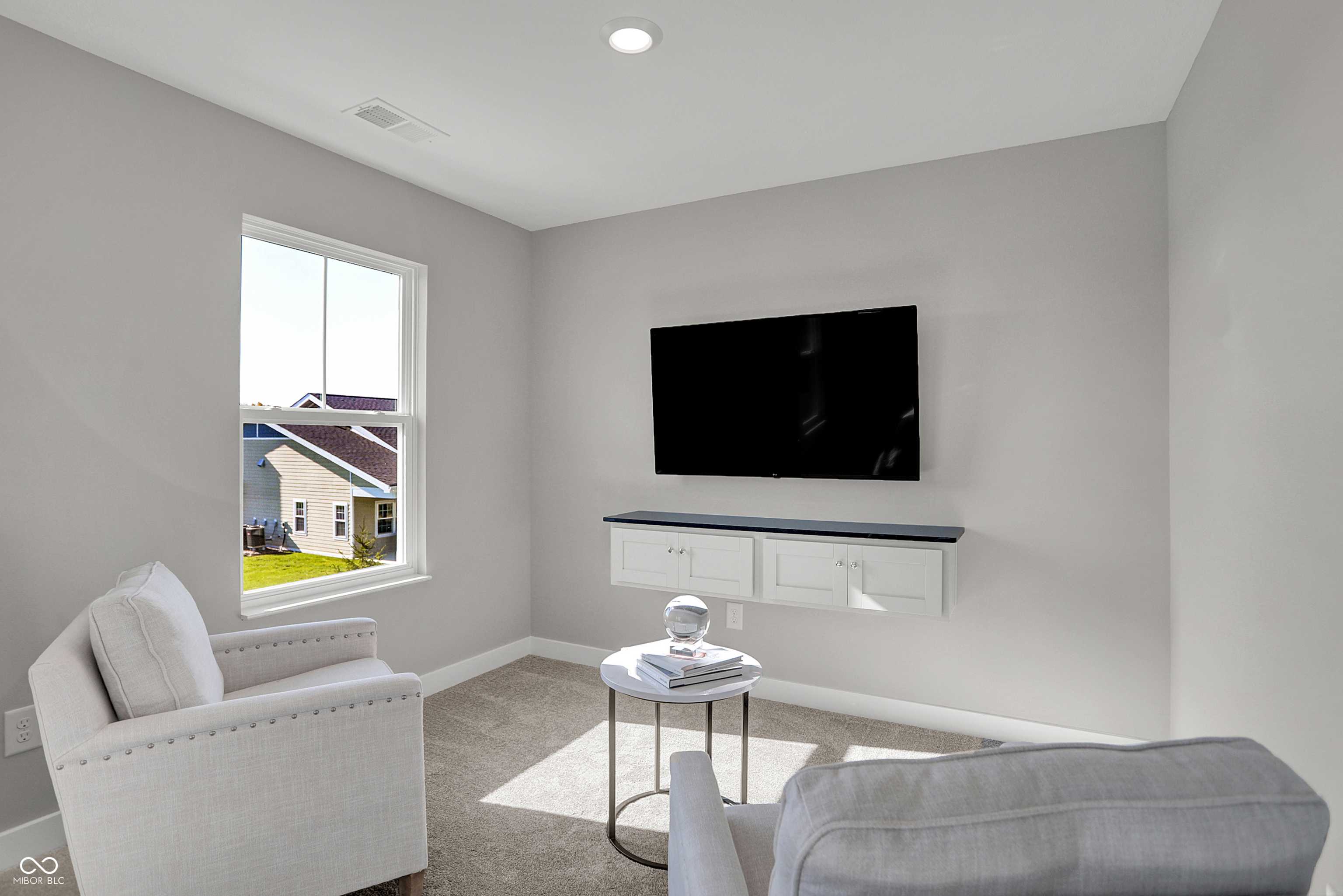 Peabody Farms West is a master-planned community of new single-family homes with upscale amenities, now selling in peaceful Whitestown, IN. Whitestown offers small-town charms with a lively downtown area and tons of parks for endless outdoor recreation. Among popular sites are the Big 4 Trail and Gateway Park, which includes an accessible fitness trail, zip line, shared play areas and swings. This two-story townhome-style condo makes smart use of the available space. The open living area is on the first floor and includes a kitchen, family room and dining area with a covered patio attached. Upstairs are three bedrooms, including the owner's suite, as well as a versatile loft and laundry room. *Photos/Tour of model may show features not selected in home.