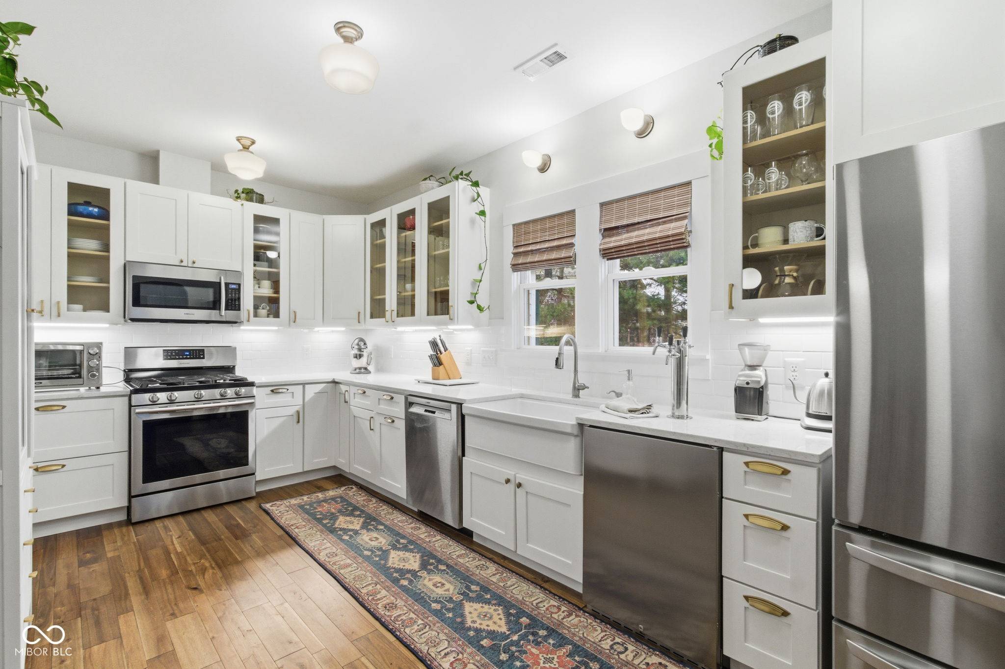 Live in the heart of it all and invest in the rapidly growing quaint community of Whitestown! This darling bungalow is a gardener's dream and has been completely remodeled from top to bottom-taken down to the studs and rebuilt with modern comfort and efficiency! Lg backyard w/ample garden rows ready for Spring! Peach tree and strawberry patch! Inside, the home features a desirable 3-bedroom, 2-full-bath split-bedroom floor plan, all grounded by gorgeous real Acacia hardwood flooring throughout. The large dining room with its original built-in cabinetry and exposed brick flows seamlessly through arched doorways into a spacious kitchen featuring quartz countertops, stainless steel appliances, farmhouse sink, and a standout triple-tap kegerator-perfectly adaptable for pouring everything from craft beer/cocktails and cold brew to sparkling water and cider. Spacious primary suite offers direct access to the back patio, along with a custom walk-in closet and a beautifully updated bath w/a comfort-height double vanity and oversized subway-tiled shower w/double shower head. 2nd bedroom en-suite w/jack-n-jill bath. The enclosed breezeway/sunroom with HVAC, offers the perfect transition space and provides direct access to the oversized 1-car garage which is insulated and has its own 200-amp sub panel, cabinetry, dedicated heater, making it ideal for a workshop, hobby space, or addl storage. Enjoy raised 9' ceilings, updated electrical/plumbing and foam and batt insulation for excellent energy performance. Major components have already been completed with newer windows and roof (2017) and tankless gas water heater and HVAC (2019). Fully encapsulated crawl space w/sump pump and dehumidifier. Walking distance to many amenities incl: Moontown Brewing, LA Cafe, Greek's Pizzeria, Hattie's Coffee, Panther Park and more, including the new Big 4 Trail through Boone County connecting to Zionsville! Minutes from shopping, restaurants and I65! Beautifully updated yet full of old charm!