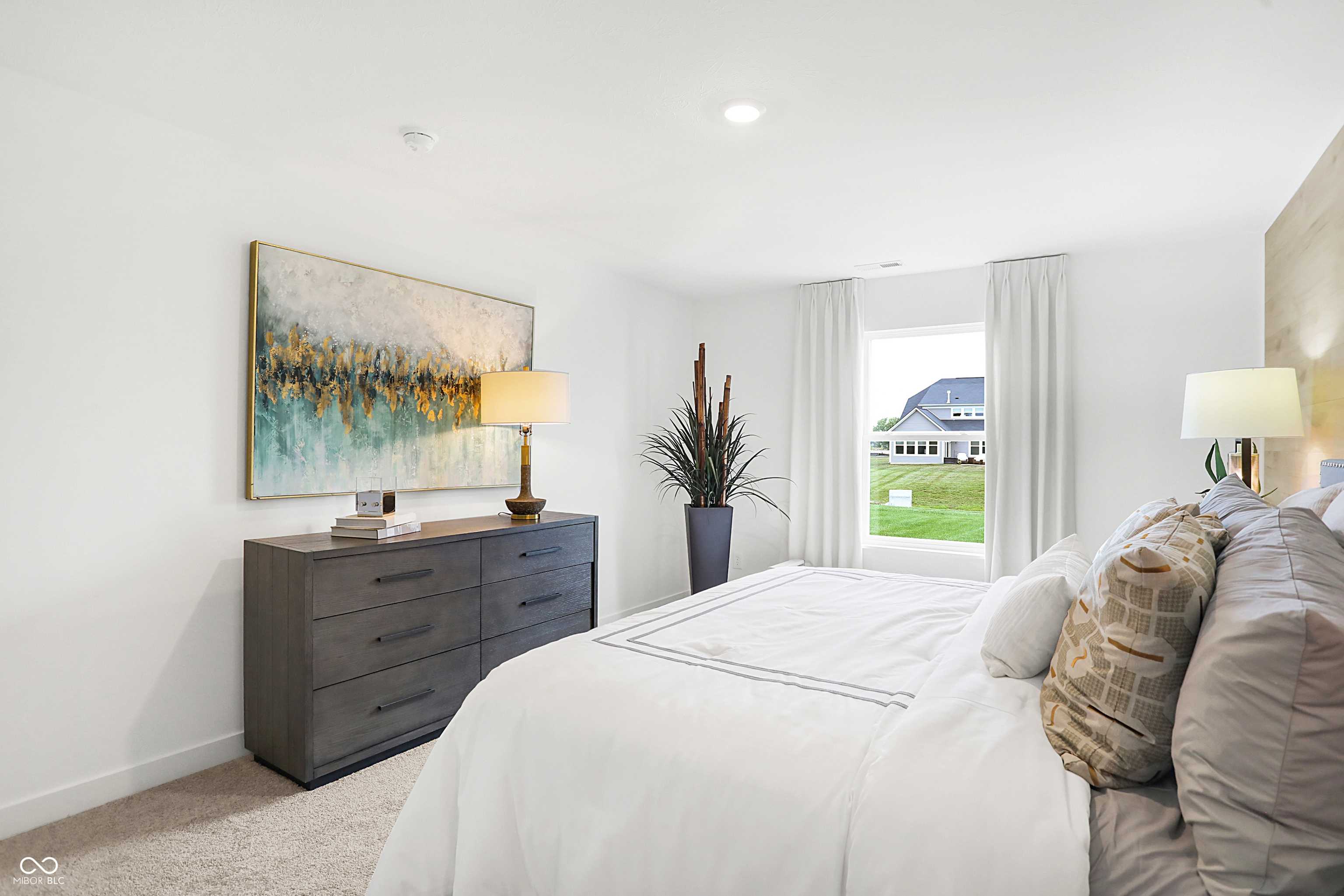 The Carriage Duplex collection offers new duplex-style homes for sale at a great value, to the Beyer Estates masterplan in Fortville, IN. Built to inspire outdoor living, this community offers over 10 acres of common space, featuring trails, a central park, playground and picnic shelter. Situated near vibrant Indianapolis, Fortville provides a serene Midwestern atmosphere with close proximity to excellent recreation sites and upscale shopping at Hamilton Town Center. Flat Fork Creek Park and Geist Reservoir offer year-round activities like hiking, mountain biking, kayaking, fishing and boating. This new home design is laid out on a single level, offering ease of living and ample space for both relaxation and entertainment. The expansive Great Room serves as the heart of the home, seamlessly connecting to a modern kitchen and airy dining area. At one end is the large owner's suite with an attached bathroom, while two secondary bedrooms sit at the opposite end. Rounding out the space is a versatile two-car garage. *Photos/Tour of model may show features not selected in home.
